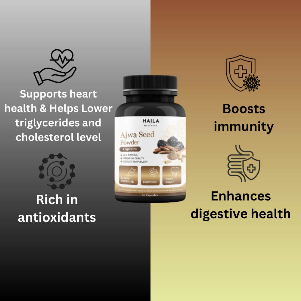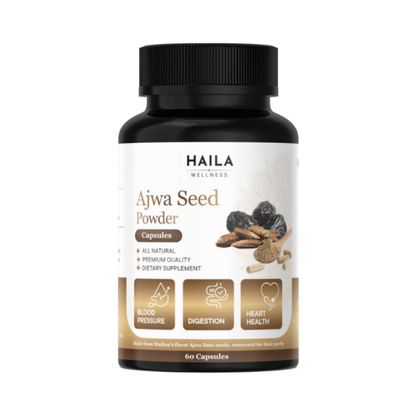 Haila Wellness Ajwa Seed Powder Capsules contain pure, carefully processed Ajwa seed powder to deliver a consistent serving of this traditional ingredient. Packaged as convenient capsules, they make it simple to include Ajwa’s natural profile in your everyday life without preparation or strong flavors. Ajwa has a long heritage of use in natural wellness routines, and these capsules bring that tradition into a modern, measured format.